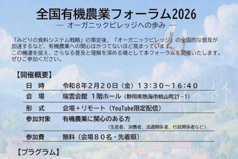 | 2026.01.30 トピックス | 【告知】2/20に全国有機農業フォーラム2026を開催 |