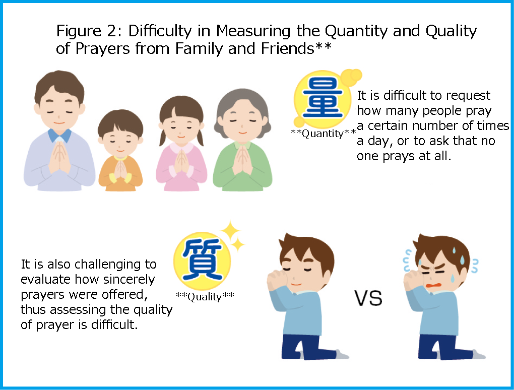To ensure fairness, as the patients varied in illness, age, and severity, the group assignment was determined solely based on their admission numbers. A team of five individuals praying was given only the names of the patients (e.g., “Kiyoshi”). The patients were unaware of whether they were being prayed for, and neither the researchers nor the individual prayers had direct knowledge of the patients, making this a highly reliable study method known as double-blind, which allows for the exclusion of placebo effects.
