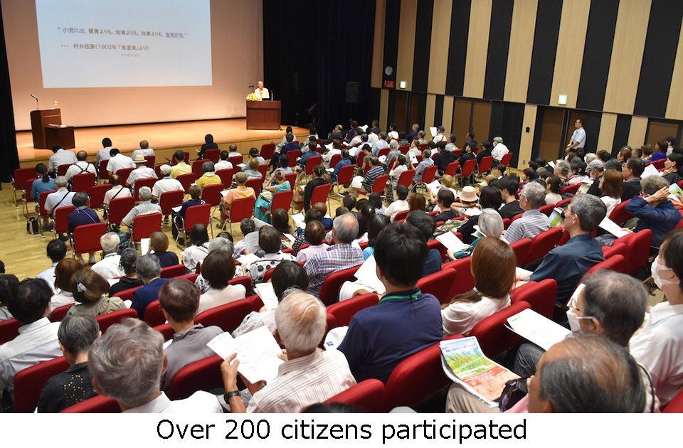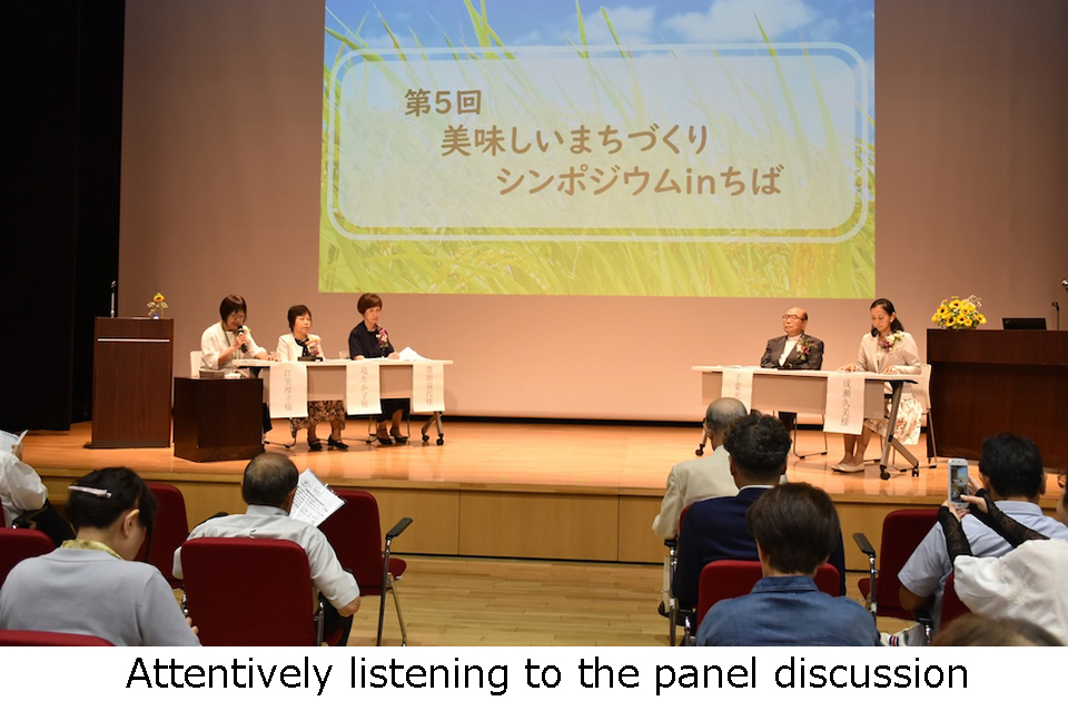 On August 31, the “5th Tasty Community Enrichment Symposium in Chiba” was held at the Zen-Nippon Security Hall (Yawata Civic Center) in Ichikawa City, and over 200 participants, including citizens, government officials, and local legislators, attended. The event featured a lecture by Honorary President Yoshiaki Watanabe of Niigata University of Food and Agriculture, followed by a panel discussion. Many citizens raised their awareness of community enrichment through the promotion of healthy food education.